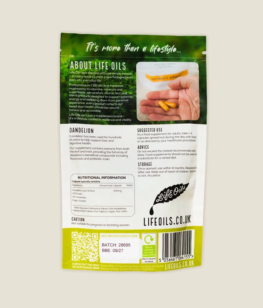 Dandelion is traditionally used to support liver function, healthy digestion and natural detoxification processes.